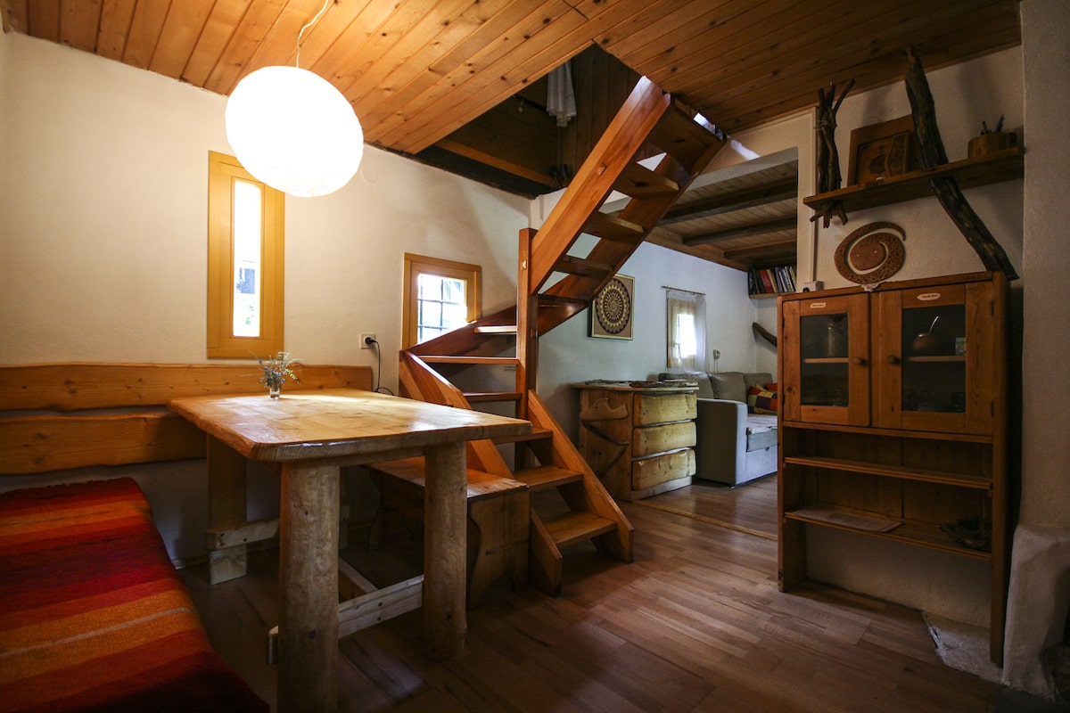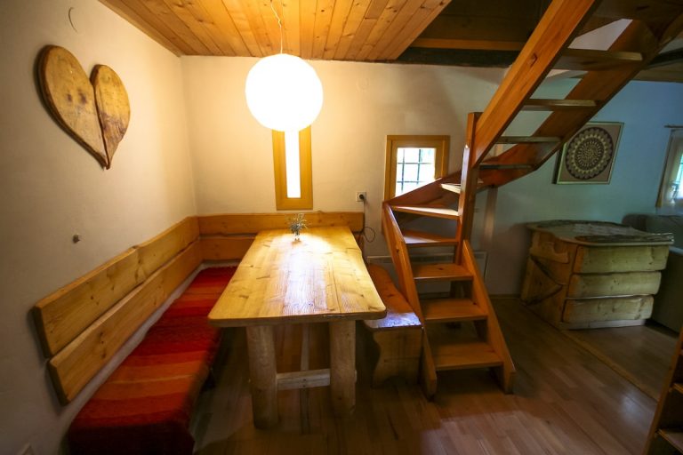 Hiša ima dve etaži in meri približno 60m2. V pritličju je manjši vhodni prostor, kopalnica z WC-jem in tuš kabino, kuhinja z jedilnico in dnevni prostor z veliko krušno pečjo. V mansardi sta še dve sobi od katerih je samo ena popolnoma ločnena od ostalih prostorov in ima balkon. Na voljo je 6 ležišč: zgoraj dve dvojni postelji, spodaj pa je sedežna garnitura, ki se raztegne v še eno dvojno ležišče. V hiši lahko torej biva 6 ljudi, v kolikor pa si želite večjega udobja je bolje, da je gostov manj. Elektrika, električni radiatorji ter opremljena kuhinja so na razpolago, interneta pa v hiški ni. Okoli hiše je precej prostora; travnik, manjši griček ob hiši, vrtna miza, nekaj teras in dve parkirni mesti. Poleg jezera je v bližini slap reke Savice, vstopna postaja žičnice smučišča Vogel pa je oddaljena 25 minut hoje. Tukaj so tudi iztočne točke za pohodništvo v bohinjske gore in planine. Ostale aktivnosti, ki se izvajajo v Bohinju in okolici pa so še; pleazanje, čolnarjenje, jadranje, paragliding, kolesarjenje, smučanje na Voglu in Kobli, tek na smučeh, turna smuka, obisk adrenalinskega parka…